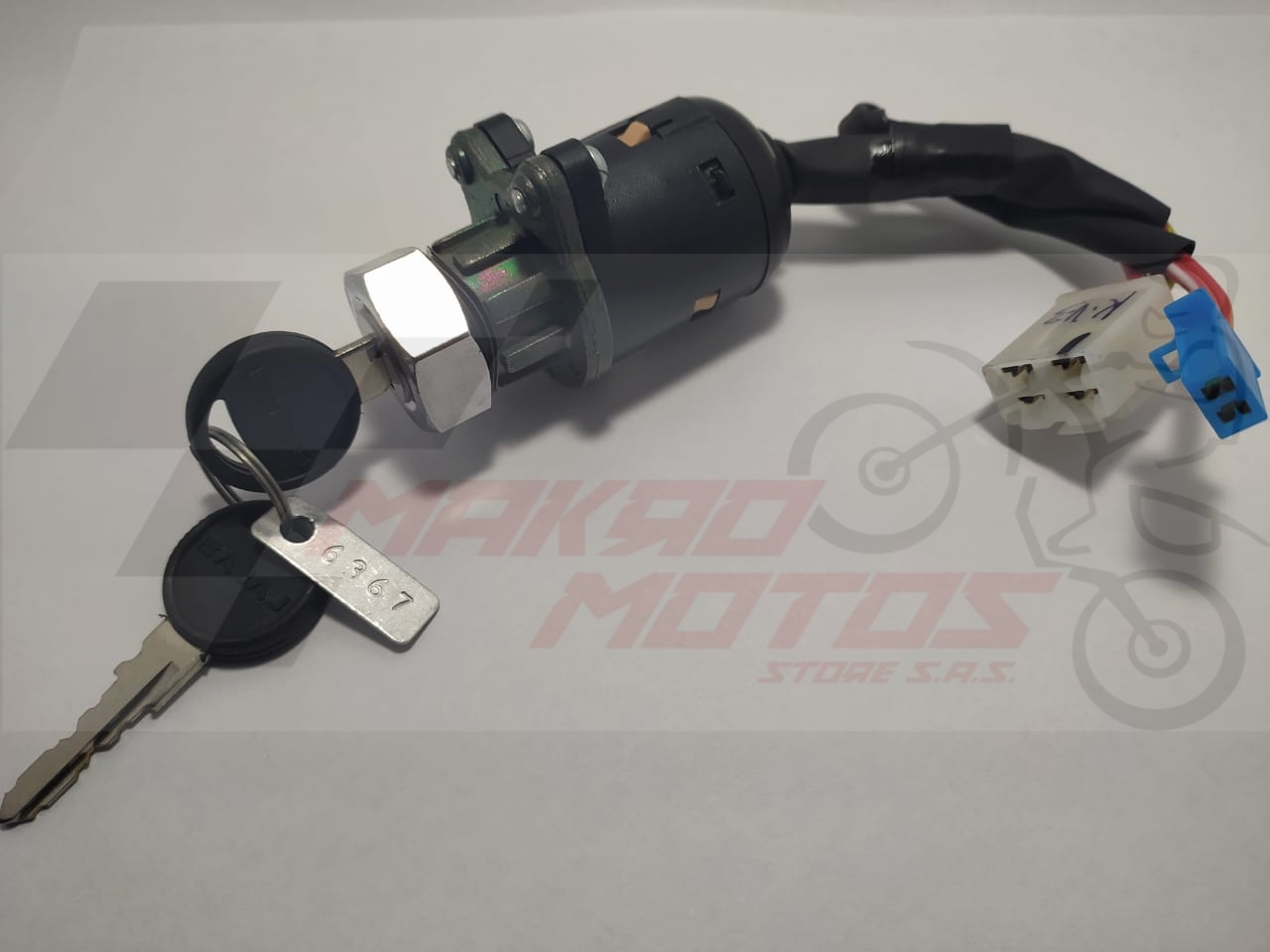 Switch de encendido para motocarro Bajaj R.E 205, incluye dos llaves. Repuesto original